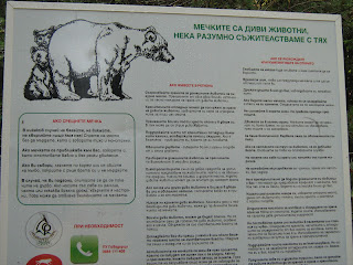 Има няма 20-30м и стигнахме до една табела, която накратко ни инструктира какво да правим ако срещнем местните обитатели - мечките.