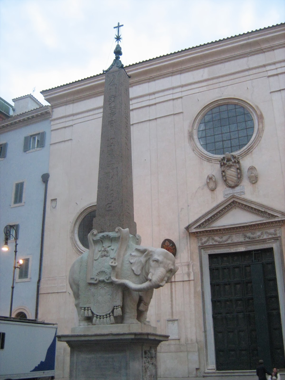 Дупето на слона сочи към една сграда, в която навремето е заседавал трибуналът на Великата Инквизиция. На това място Галилео Галилей се отрича от своите научни убеждения, за да избегне смъртта.